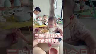 三胞胎 餵副食品,爸媽火力全開‼️ 先送一隻去睡覺 全力服務兩隻姐妹 #三胞胎 #親子生活 #triplets #三胞胎育兒日常 #副食品 #育兒生活