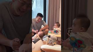 遇到雙胞胎女兒們~爸爸都變傻甜了🥰 #baby #萌娃 #triplets #cute #三胞胎 #親子 #可愛 #日常